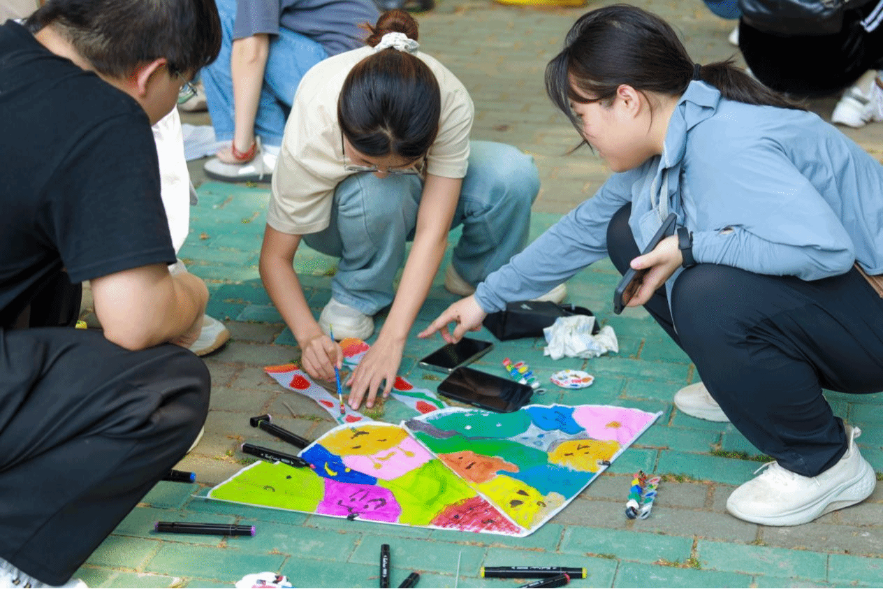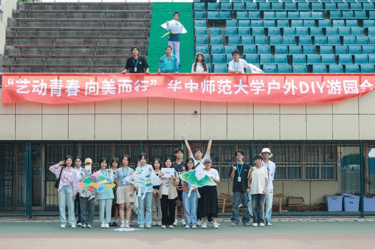 华大青年讯(通讯员 俞华阳 王政锠)4月20日下午,由华中师范大学心理学院(以下简称“心院”)团委和学生会主办的“艺动青春,向美而行”户外DIY游园会在佑铭体育场举行。本次活动紧密围绕 “五育并举” 的教育理念,通过设置八大创意美育活动摊位、集结36支跨院系队伍,为学生搭建美育实践平台,生动诠释了“以美育人,以文化人”的育人目标,促进学生全面发展。