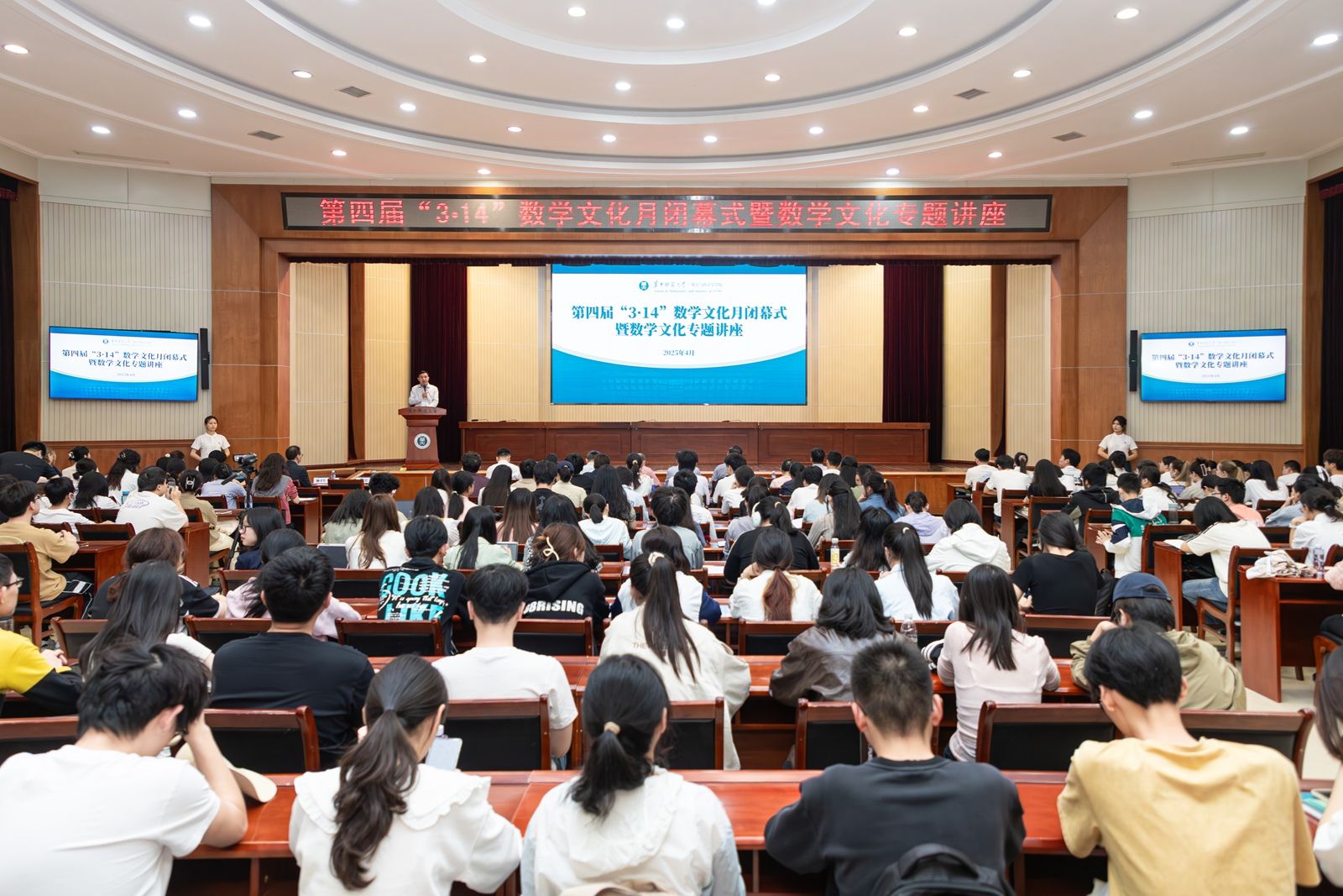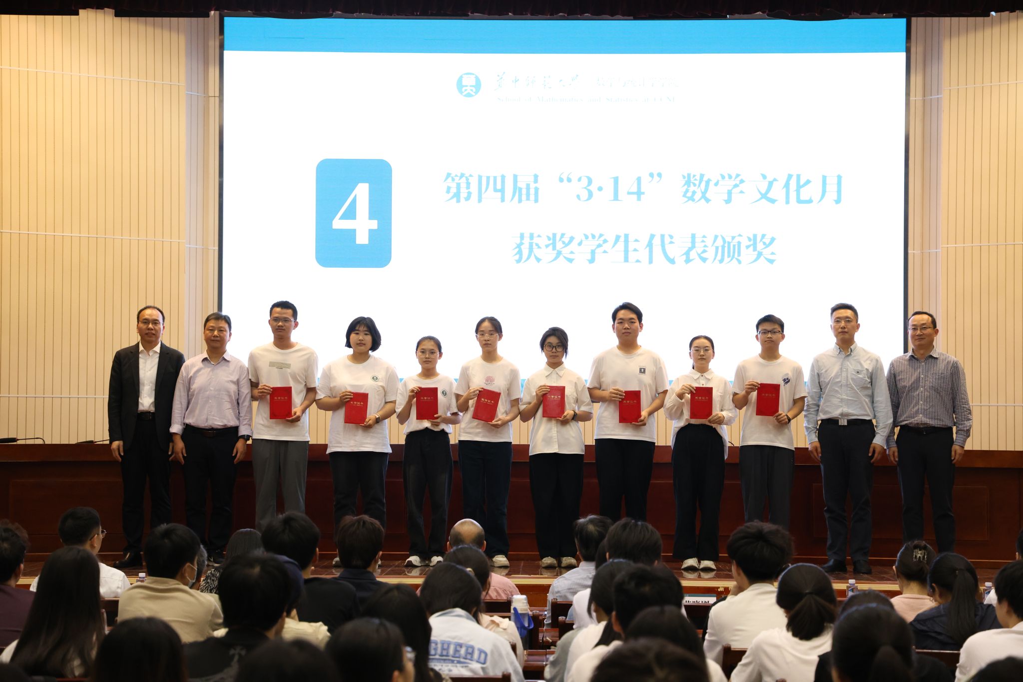 华大青年讯(通讯员 杨雅妍 程欣) 4月16日下午,数学与统计学学院(以下简称“数统学院”)第四届“3·14”数学文化月闭幕式暨《数学之美——从尺规作图谈起》数学文化专题讲座于科学会堂一楼报告厅举行。华中师范大学校长彭双阶,党委学生工作部副部长李刁,校团委书记苏晓刚,科技处处长张本威,本科生院副院长李静,数统学院党政班子成员、专业教师出席本次闭幕式。莫斯科国立师范大学交换生、数统学院本研学生代表到场参会。闭幕式由数统学院党委书记刘成竹主持。