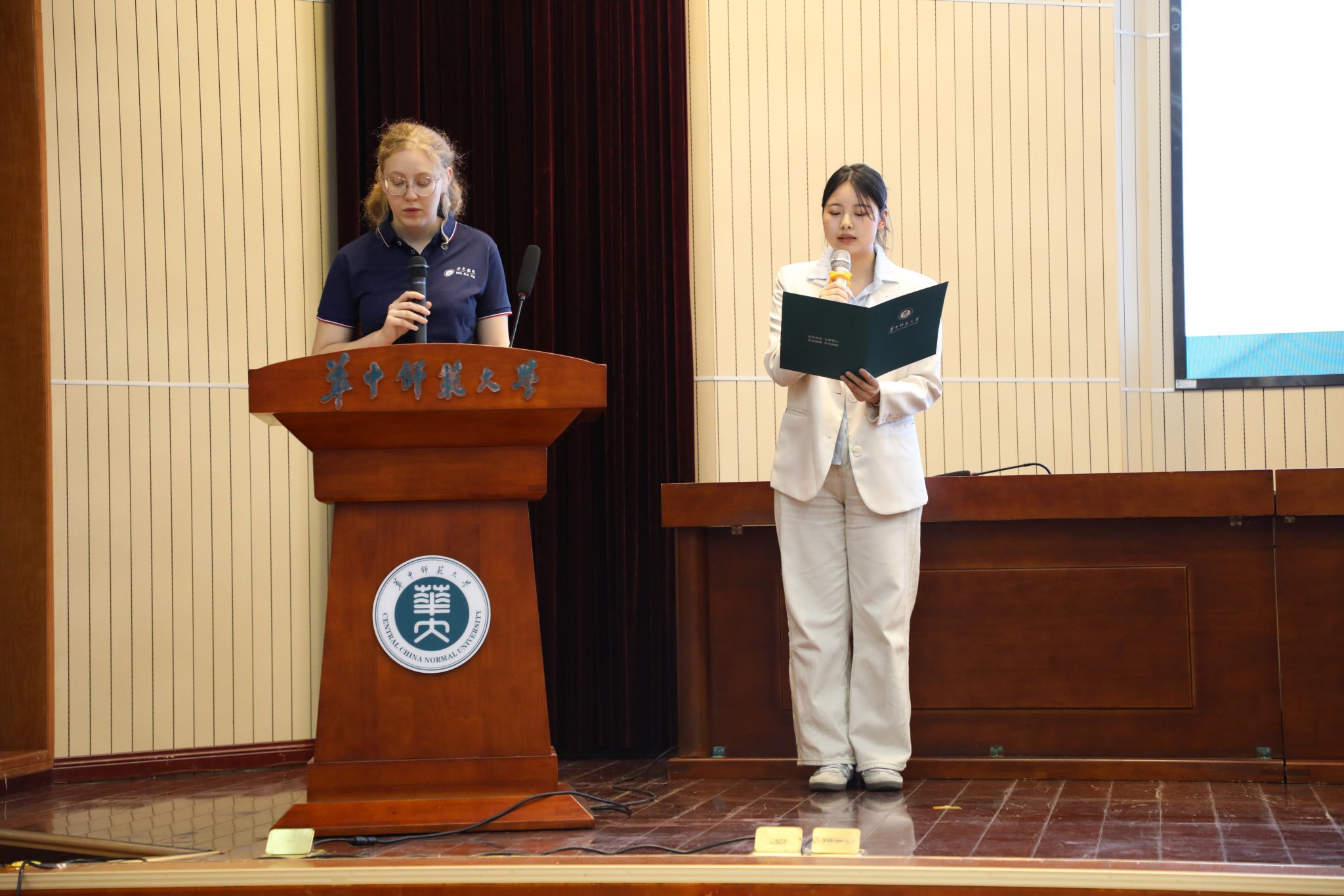 玛丽娜作为莫斯科国立师范大学交换生代表分享了她的数学探索之旅。在数学文化月系列活动中,她参与非遗油纸伞和灯笼的制作,体验数学文化与传统文化的碰撞。她特别提及在宜昌第六中学为八年级学生设计的“代数几何桥梁课”,以动态函数图像演绎传统建筑榫卯结构,这段经历让她体会到数学作为无国界语言的巨大魅力。在随后播放的选手风采展视频中,同学们分享自己参与本次数学文化月系列活动的创作灵感和活动感受。李刁、苏晓刚、张本威、李静、郑高峰、郭玉劲、杨可军先后为获奖学生代表及留学生代表颁奖。