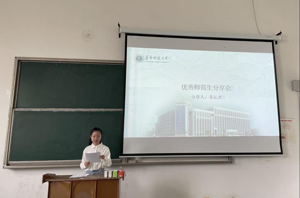 分享会伊始,主持人高露真引导到场学生有序入座,向大家简要介绍了两位优秀的主讲人——2019级公费师范生朱云杰,2019级公费师范生付艳颖,并宣布分享会开始。
