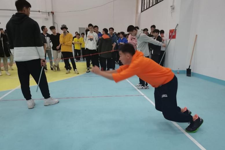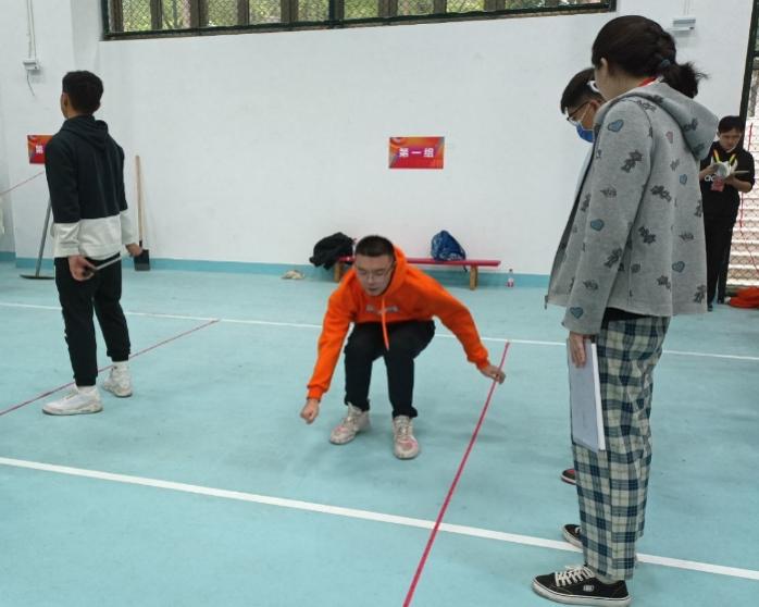 比赛开始前,化学学院男子立定跳远项目的运动员们于佑铭体育馆副馆清点人数,整顿气势,蓄势待发。运动员们利用等待时间,抓紧练习,熟悉场地,平复紧张心情。
