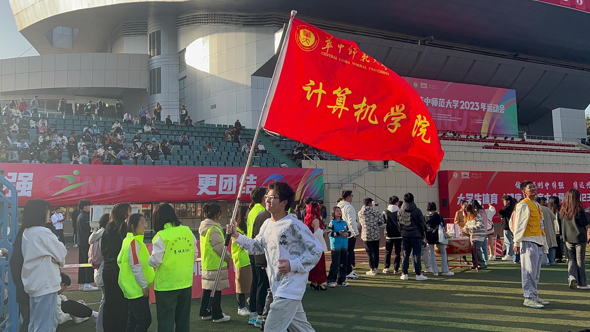 在运动健儿们在场上奋力奔跑、挥洒汗水的同时,计算机学院的“后援团们”也被他们的激情所感染,在比赛场外为运动员们加油助威。场内挥舞的院旗迎风飘扬,为正在奔跑的选手们注入一针强心剂。“比赛中运动员们全力奔跑的样子和他们身上展露的体育精神让我十分感动。”计算机学院2023级本科生黄高涵观看了整个比赛,深受震撼。“尽管出现过落后,被其他运动员拉开差距,但是他们仍然坚持奔跑,全力以赴、奋起直追,最后实现逆袭反超。”计算机学院2023级本科生周知慷被运动员们奔跑的身影深深触动。