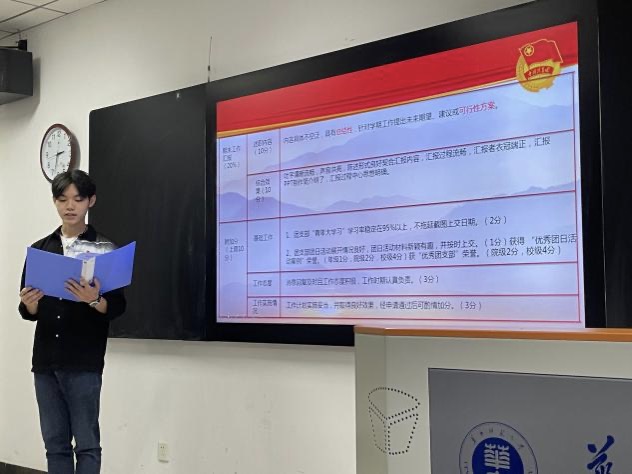 会议主要分为四大部分进行,主要对于团课截图、团日活动等团支书日常工作要求进行规范,并详细解读了团支书考评条例,进一步加深团支书们对于团学干部工作的认知。