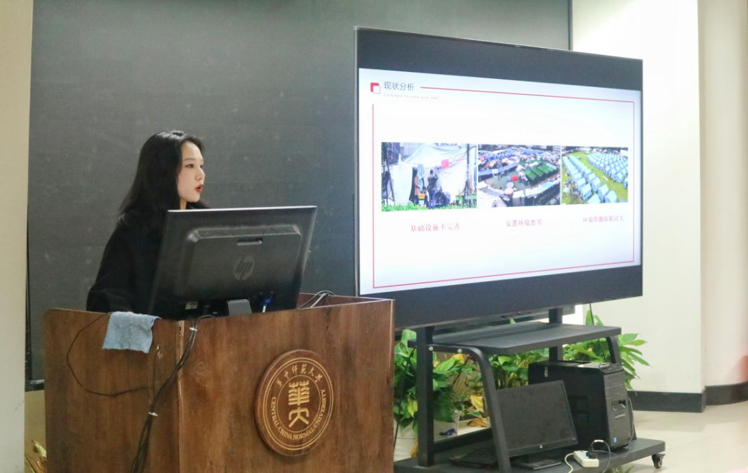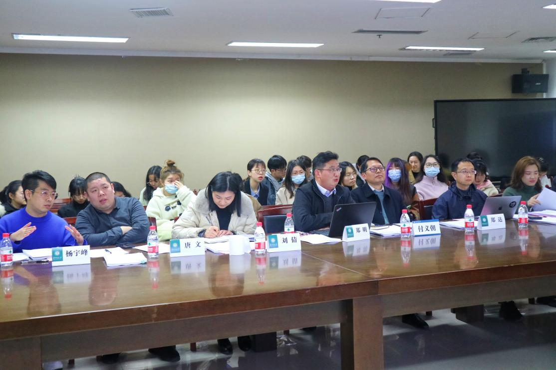 武汉科技大学校外硕士生导师、兼职教授郑明,美术学院党委书记付义朝,副院长郑达,党委副书记刘倩,环境艺术教研室主任唐文,数字媒体专业教师张寒,环境与艺术专业教师杨宇锋,团委书记孙宇,团委副书记罗淳出席此次会议。本次答辩共有来自本研的五支队伍参加,评审答辩采用项目组成员PPT汇报、现场展示和评委提问的方式进行。