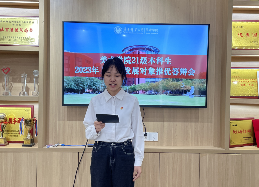 华大青年讯(通讯员 徐月梅 郑晖燕 多佳 季煜坤)4月7日晚上,华中师范大学美术学院2021级本科生2023年上半年发展对象推优答辩会在美术学院507会议室举行。2021级辅导员徐月梅、罗淳出席答辩会。2021级十余名拟发展对象参加本次答辩会。