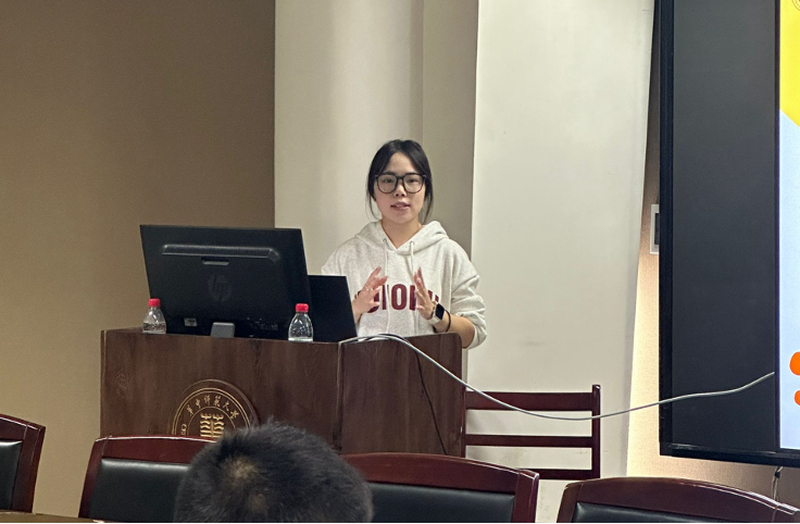 比赛伊始,徐雯静介绍比赛流程和比赛规则,随后各参赛集体逐一进行风采展示和答辩。聚焦演讲,各班负责人充分体现了师范生集体的团队凝聚力。2022级美术学三班的周霁雯,切合“树师德,炼师能,展师风,铸师魂”主题内容,准确恰当地表情达意,展现了师范生集体的风貌风采;美术学2101中国书画班的许悦悦,答辩内容层层推进,步步深入,用丰富的语言技巧强化演讲的感染力,充分体现出集体的发展与同学间的相互促进。