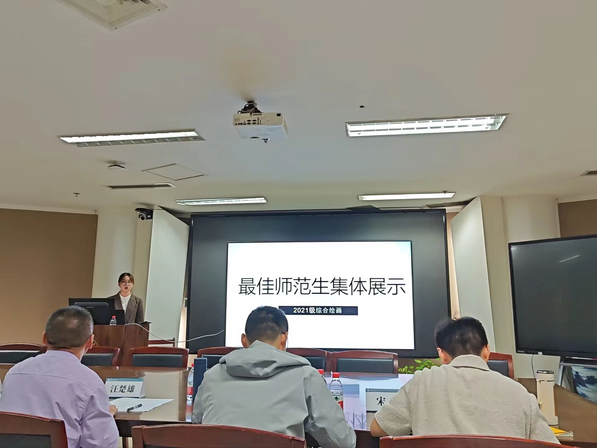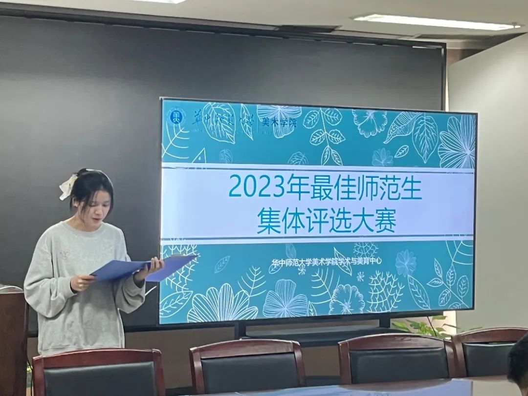 华大青年讯(通讯员 张滢滢 余璟喆 姜乐璞)为增强师范生集体的团队凝聚力,勉励师范生集体共同进步,努力成长为能担当民族复兴大任的优秀人民教师,美术学院第十四届最佳师范生集体评选于10月15日中午在美术学院五楼会议室举办。本次比赛邀请了美术教研室汪楚雄、宋磊、杨峰以及2023级本科辅导员陈颖嘉作为评委老师,徐雯静担任主持人。参加比赛的集体有美术学2101中国书画班、美术学2201班、美术学2203班以及美术学2103综合绘画班。