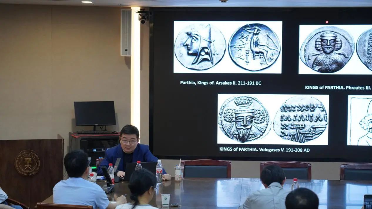 朱浒从新发现的安息人与安息雀画像石、汉代胡人席镇与安息举右手人像、浙江海宁画像石墓中新发现的罗马艺术因素三方面分享了他本人关于中国与安息、罗马艺术交流的研究。