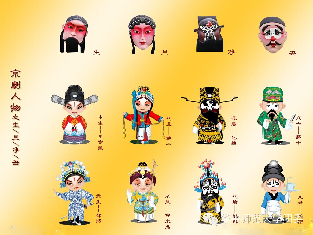 再则,京剧中的生旦净末丑大家也许不知道他的具体情况,但对这几个词也是熟为人知的。京剧行当的划分,除依据人物的自然属性(性别、年龄)和社会属性(身份、职业)外,更主要的是按人物的性格特征和创作者对人物的褒贬态度不同而异。