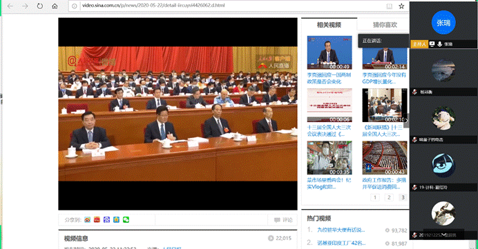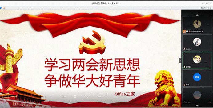 近日,Office之家在腾讯会议平台举行了以“学做两会新思想,争做华大好青年”为主题的线上两会学习活动。宣传部部长黄思懿组织大家共同观看了两会开幕式的相关视频,观看结束后社员们语音交流了自己的心得感受。