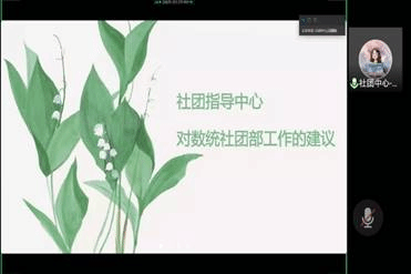 会议进入第三项,三方代表提出建议。首先,秦诗睿表示各学术性社团应利用网络优势,结合自身特色,大力培养社团成员的创新探究能力。同时他希望各社团能调动数统学子的学习积极性,并建议在日后的工作中能加强挂靠社团之间的交流与合作,如四个社团联合举办线上学术分享会。随后,甘璐颖对数统学院社团部工作做出评价,并对各社团提出建议。她指出学术性社团在学校的活动中通常能发挥更大的作用,同时也希望各社团在活动中能充分发挥社团指导老师的作用。她补充道:“加入学术性社团的成员对科学前沿知识有着极高的求知欲望。学术性社团能通过指导老师的指导工作和科研工作帮助社团成员在创新能力、实践能力等领域进行提升。”接下来,各社团负责人依次对之前社团部工作提出了一些建议。其中数学建模与数学应用协会负责人刘金鑫表示在与社团部负责人对接的过程中有时会出现社团部负责人对新活动流程不熟悉的现象。数学文化协会负责人吴彬婷表示上学期在借教室方面比较困难,希望社团部能多为社团提供教室场地。