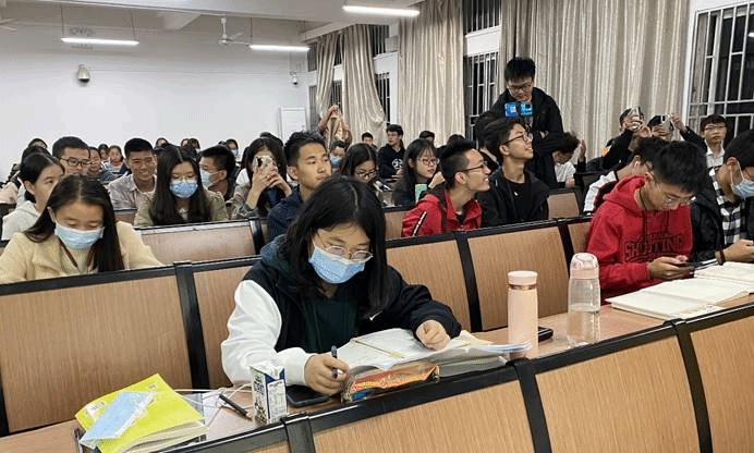 随后,他就学习生活问题与同学们展开探讨。有人提出“数学是极其依靠天赋的学科,没有天赋努力也收效甚微”这一观点,邓勤涛遂就“天赋”与“努力”二者关系做了进一步的阐述,指出我们不能只被“成功者有天赋”这一表象所迷惑,因为成功背后的努力是难以发现的,人们往往忽略这一点才导致对天赋的过度重视。“有时大家所看到的天赋只是开窍得早。有的人早开窍,有的人晚开窍,我们能做的就是坚持到开窍的那一天,有的人没有坚持,所以就不会开窍。”邓勤涛如此说道。接着,他讲述世界跳绳冠军岑小林的故事,打破世界纪录的实力来自每日四个半小时的刻苦训练。“永不满足的心态、严格的自我批评、几乎病态的坚持,这些才是所谓‘天赋’背后的真正含义。”