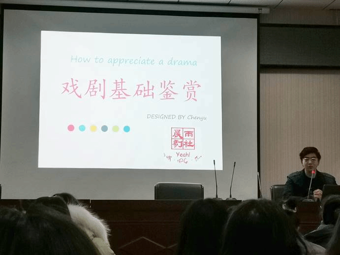 在介绍了戏剧的基本知识后,常振巍再次以视频的形式讲解了戏剧鉴赏的要点。他指出:“可以从演员的神态、语调、情绪中了解表演,从剧情中把握主题,而戏剧的核心便是通过讽刺等手法表达内涵。”