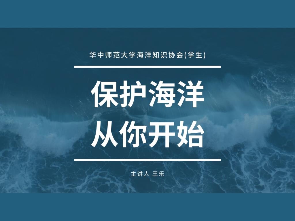 华大社团中心讯(通讯员 陈家淼 詹思颖)4月24日下午,华中师范大学海洋知识协会(学生)海洋知识大讲堂,在十号楼南楼301进行。本次海洋讲堂由海洋知识协会宣传部长王乐主讲,主题为“保护海洋 从你开始”。