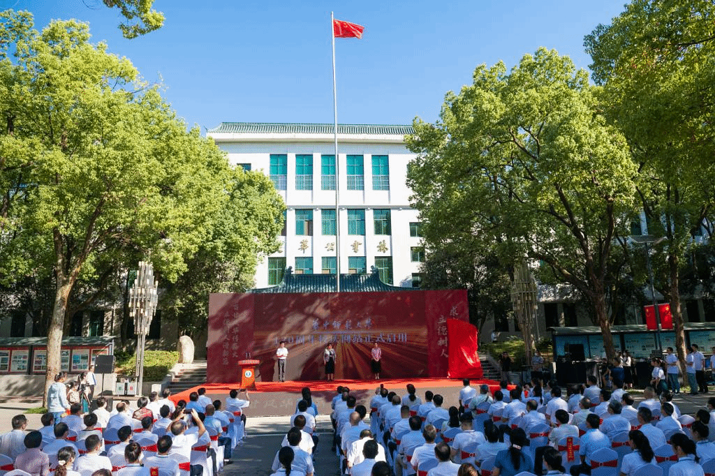 华大在线讯(记者 华轩)南湖浪涌,桂香灵动,金风和畅,华大葱茏。一百一十九载,弦歌不辍;一百一十九载,春华秋实。10月2日,全体校领导、各单位主要负责人、校友代表、离退休教师代表、教师代表、学生代表齐聚文华公书林,共同庆祝学校119周年华诞,共同见证120周年校庆倒计时一周年启动仪式。校党委书记赵凌云、校长郝芳华,原校领导王庆生、马敏共同为倒计时牌揭幕。启动仪式以线上线下相结合的方式举行,校党委副书记查道林主持。