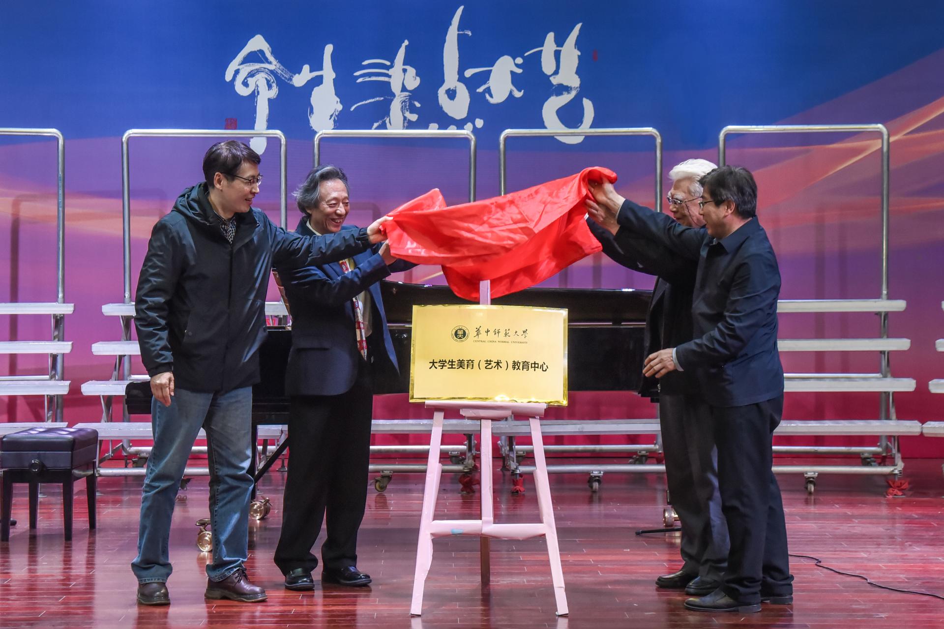 在闭幕式上,副校长彭双阶、校大学生美育(艺术)教育中心主任田晓宝教授、教育部艺术教育委员会原常务副主任周荫昌、校本科生院负责人共同为华中师范大学美育(艺术)教育中心揭牌。合唱节期间,学校还举行了艺术教育发展规划会议,副校长李鸿飞、相关职能部门负责人及专家学者出席。大学生美育(艺术)教育中心负责人从美育生命、守正创新、建章立制等七个方面进行了工作介绍,与会嘉宾围绕如何推进学校美育高质量发展进行了研讨。
