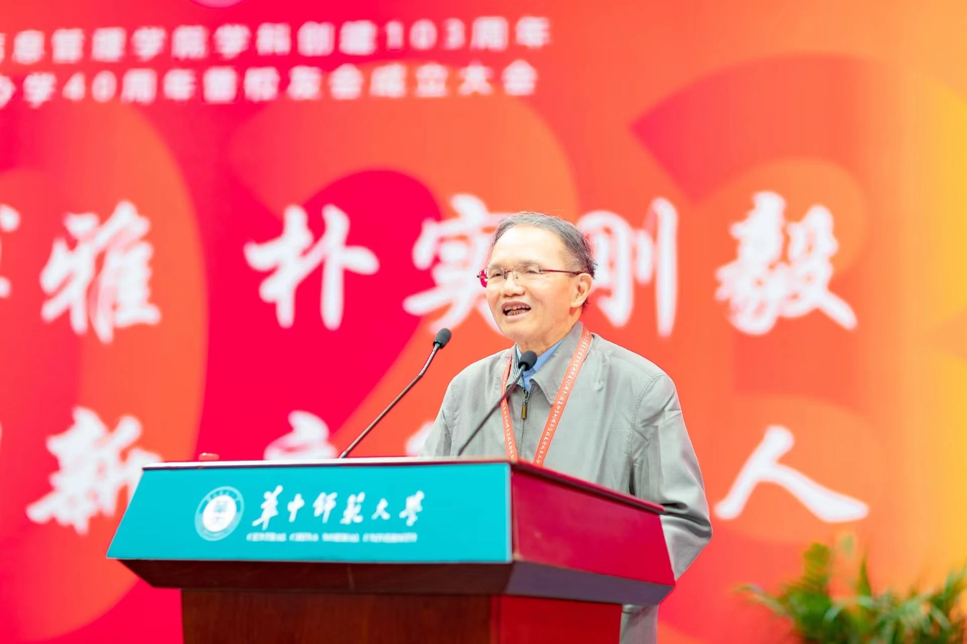 武汉大学人文社会科学资深教授马费成在致辞中表示,百年沧桑,风雨兼程,历经几代信管人的拼搏奋斗,华师信息管理学院始终秉承立德树人的根本任务和“以生为本,以师为先”的办学理念,一路奋发图强,在学科建设、人才培养、科学研究、社会服务及国际交流等方面取得了瞩目的成就。面对信息化时代,希望学院能够把握时代发展脉搏,紧跟信息时代步伐,不断推进教育教学改革,提高人才培养质量,加强科学研究和社会服务,在新时代新征程中再创佳绩。