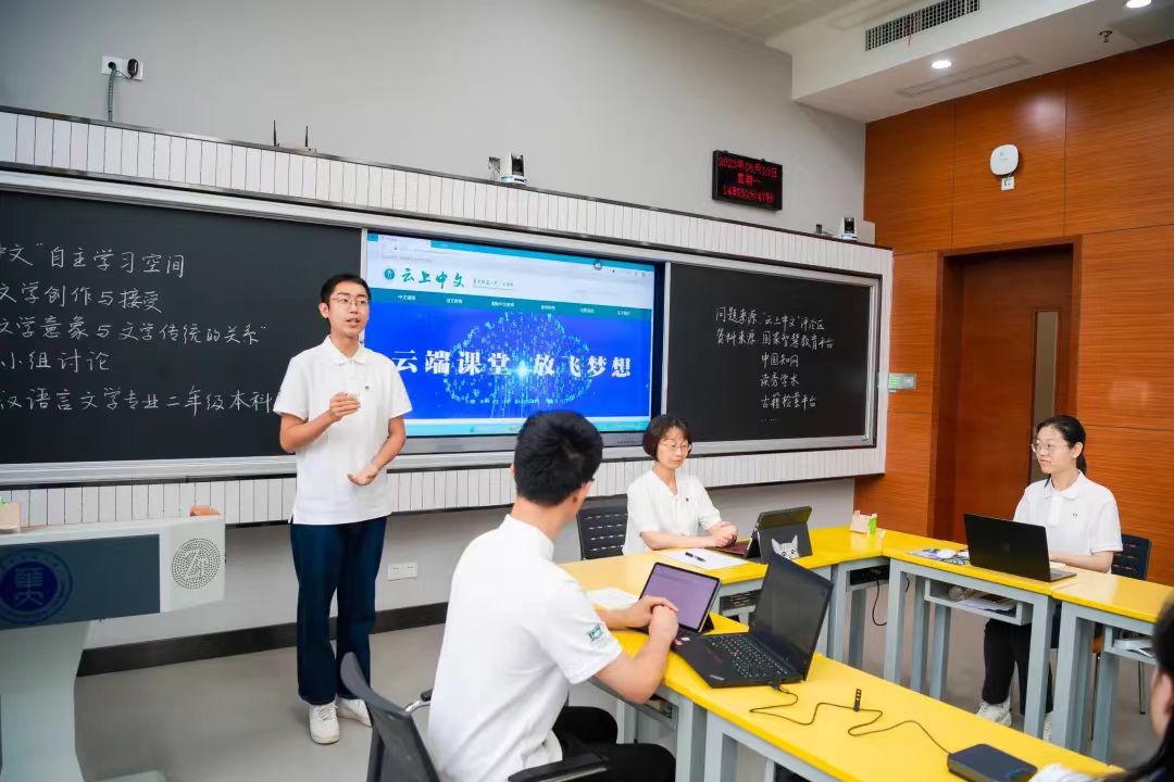 数字化助“学”,面向未来,育人为本。在“云上中文”自主学习空间,学生可以在线学习“云上中文”平台提供的课程资源,线上线下开展问题探究式互动,在教师指导下运用AI技术提升数据整合效率的同时,将小组协作学习的创造性成果反馈到“云上中文”平台,呈现数字技术赋能人文学科深度学习的日常学习场景。在“AI赋能教学分析工作坊”,师范生们运用学校自主研发的智能教学分析系统开展教学过程分析,培养课堂教学的设计、实施、分析及评价等综合能力。学生们可以在“古籍版本鉴别实训室”,以“虚实”结合的方式鉴别古籍,初步掌握鉴别古籍版本时代、真伪、性质的能力,还能够在“生物学虚拟仿真实验自主学习室”,学习兰科植物形态结构和传粉过程,开展自主式、沉浸式、探究式学习。