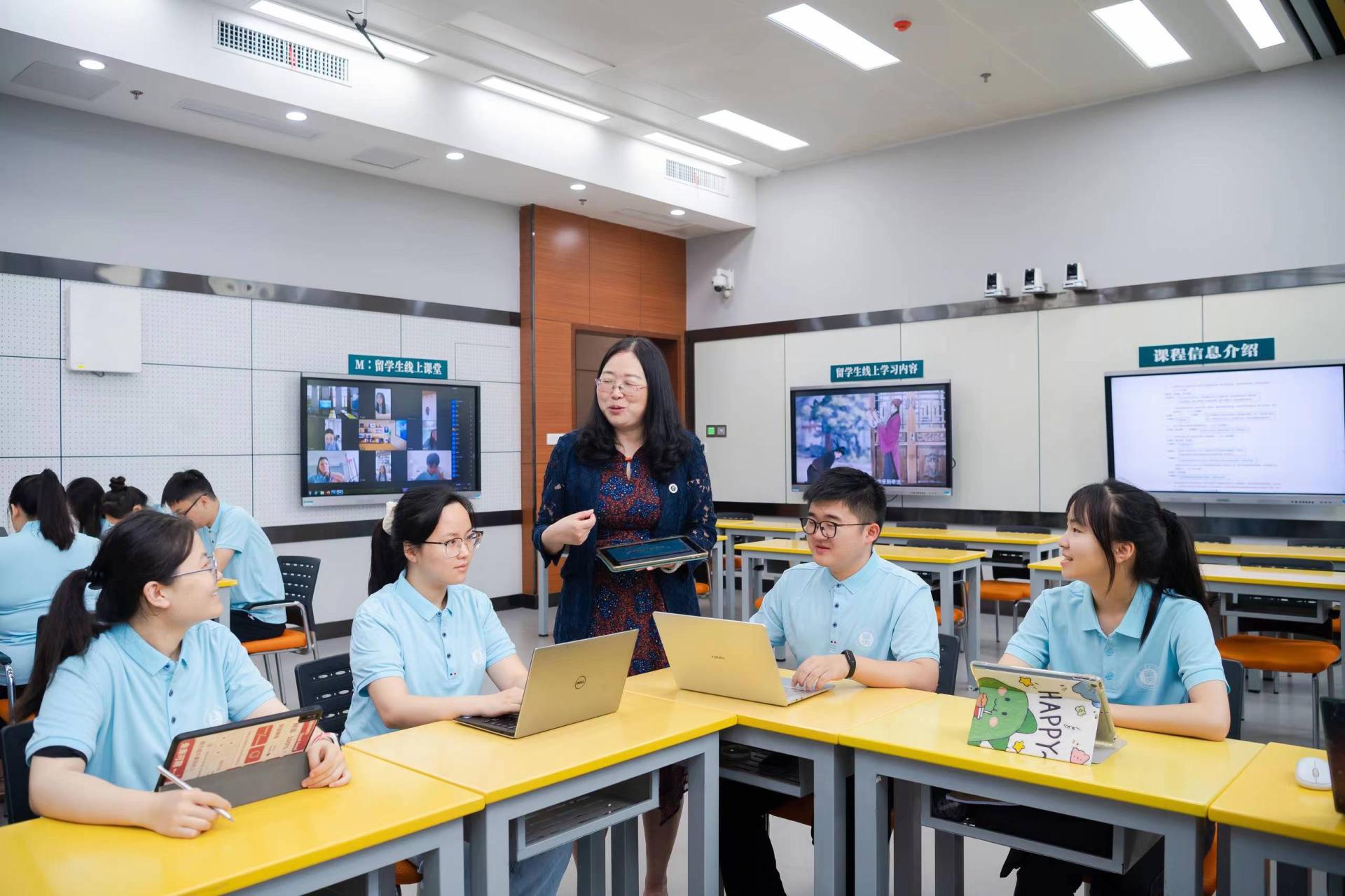数字化助“研”,统筹兼顾,协同推进。2020年5月,学校率先成立全国唯一的实体化人工智能教育学部。组建数字教师实验室、智能感知实验室,自主研发“小雅”云端一体化智能教学平台,构建全国教育信息化基础信息库,获批国家自然科学基金重大项目“人工智能赋能教与学的理论与关键技术研究”……学部成立以来,搭建大平台,组建大团队,以集中攻关开展有组织科研,引领学科新方向。
