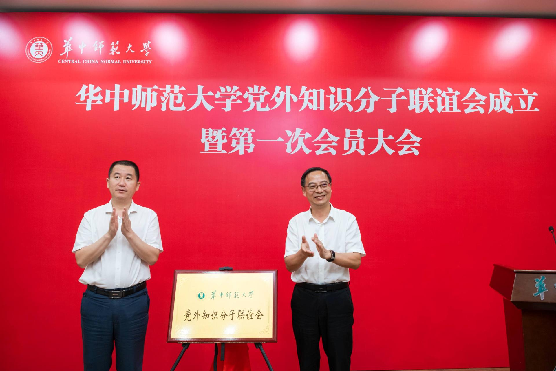 湖北省党外知识分子联谊会专职副会长刘来和校党委副书记、统战部部长查道林共同为知联会揭牌
