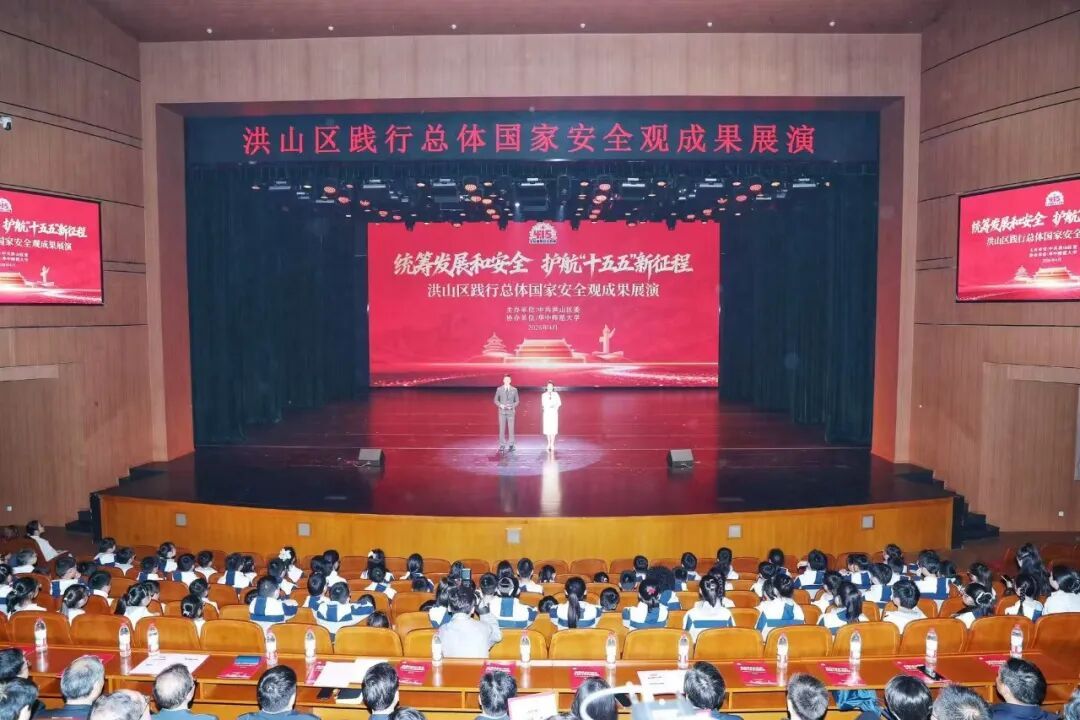 华大在线讯(通讯员 高珊 邵惠萱)在第十一个全民国家安全教育日来临之际,4月11日,由洪山区和我校共同主办的“洪山区践行总体国家安全观成果展演”在大学生活动中心大礼堂举行。本次展演是我校第四届校园安全文化节系列活动之一,以“统筹发展和安全、护航‘十五五’新征程”为主题。