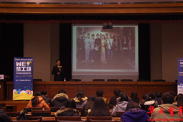 华大青年讯(记者 包芮宁 摄影 段美佳 刘赛赛)12月10日下午,博雅青年学院微时代计划“WE梦公开课”微博运营讲座在我校科学会堂一楼报告厅开讲。主讲人为深圳尚道微运营总经理、新媒体运营研究者——龚铂洋。出席此次讲座的嘉宾有新浪湖北副总经理陈雷,业务部总监陈龙以及我校校团委组宣部部长王涛 。