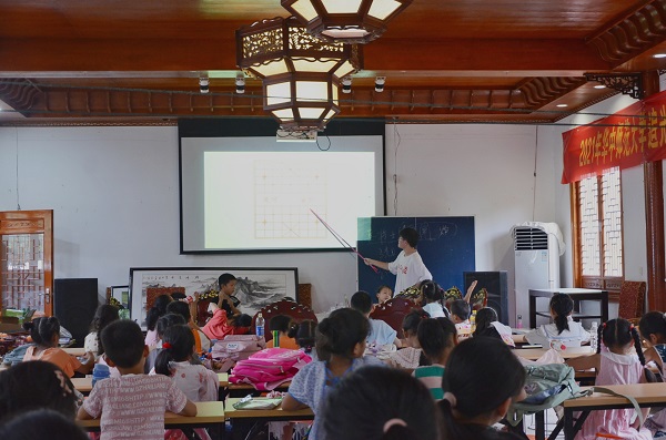 华大青年讯(通讯员 乔雨杉 李雪漫)为丰富留守儿童对于中华传统文化的了解,促进传统文化的传播,7月20日下午,华中师范大学信息管理学院追光实践队为赵李桥镇羊楼洞村暑期支教班举办了一场以“中国棋文化”为主题的传统文化教育讲座。