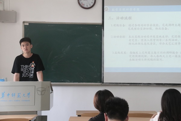会议伊始,田超对本次社会实践活动的组织架构和分组情况进行介绍。菁诚暑期红梦之旅社会实践队目的地为洪湖瞿家湾,由数统学院党委副书记田俊,团委副书记谢定一、武靖担任指导老师,并分为四个小组开展活动,同时配备宣传组、理论宣讲组、调研组,分工明确,以保证日后实践活动的有序开展。田超强调,这次实践活动期间,队员之间要互帮互助、相互关爱,努力增强团队凝聚力。