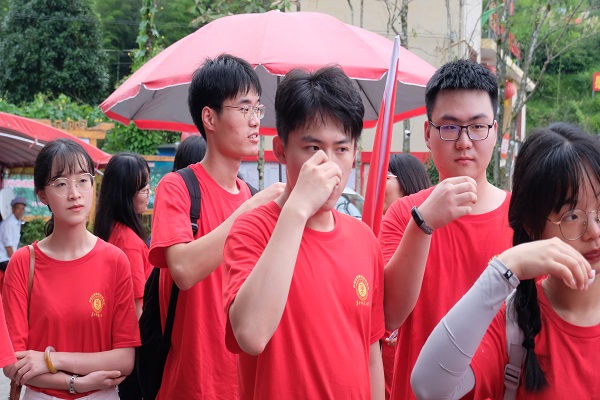实践队于四点一刻抵达神山村,由当地村民左香云接待。左香云是红军先烈左桂林的后代,同时也是第十三届全国人民代表大会江西代表之一。在他的带领下,队员们重新走过习总书记走过的路,拜访当地居民,走近黄桃种植园。随后,左香云亲切地邀请实践队员们去他家做客,介绍他家中的毛竹工艺品。他表示“从前当地居民住山靠山,只会用山竹来做一些简单的竹制品。”如今,他收购当地村民种的竹子,制作成精美的竹制笔筒、木梳等,再雕刻上精美的花纹。经过加工的竹制品,无论是价格还是销量,都远远高于以前。这让队员们感受到走好脱贫道路,振兴产业必不可少。