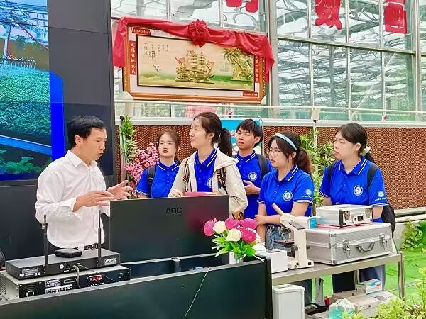 在参观学习漆潦村的产业园时,队员们了解到,自疫情解封以来,慧民农业科技有限公司负责人谭建平所创办的慧民农业科技有限公司是最先入驻漆潦村并带动全村就业的企业。在企业入驻以前,漆潦村是一个较为贫苦的小村庄,多老年人留守,道路窄小不通畅。2021年,谭建平积极响应国家土地经营权流转这一政策,决定“化小村庄为大农田”,投资入驻漆潦村。在政府的支持与帮助下,漆潦村加快了道路畅通、基础设施完善的步伐,在短短两年内实现了翻天覆地的变化。正是谭建平的这一创举,改善了漆潦村的居住环境,也为村民们带来了许多工作岗位,真正做到了“为了人民”。