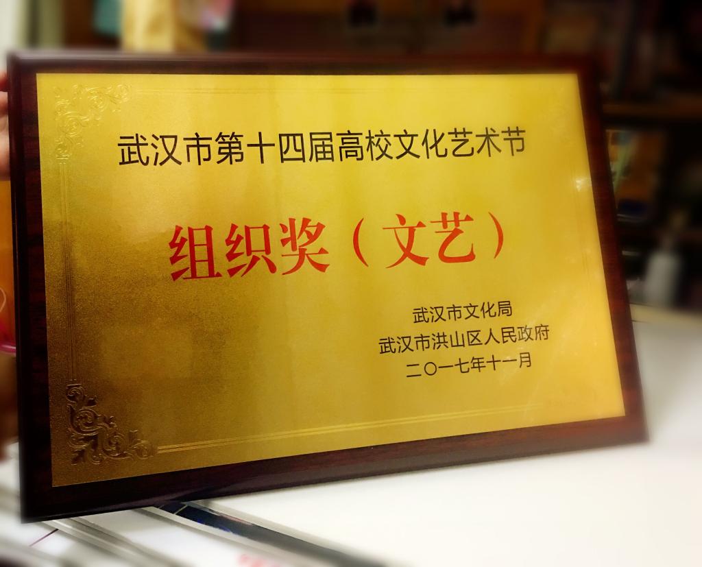 晚会节目接近尾声,最后环节便是颁奖仪式。经过赛事评委会评审、组委会最后审议,颁发了“青春激扬 追逐梦想”第十四届武汉地区高校艺术节优秀组织奖和组织奖单位。而华中师范大学凭借着对艺术节活动的积极参与和支持,荣获优秀组织奖。