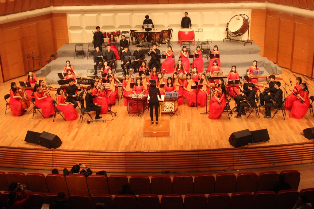 在本次展演中,我校华大艺术团的领军团队民乐团表演了《迎宾曲》、《庆典序曲》两首曲目,曲音或委婉悠扬、细细流淌,或激昂澎湃、豪情万丈,带动着现场的气氛,充分体现了我校大学生们向真,向善以及向美的艺术创造力和表现力,展现了我校高素质人才的绝佳艺术风采,增强了华大艺术团的影响力,促进了我校与其他高校的沟通与交流。