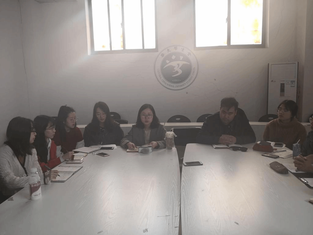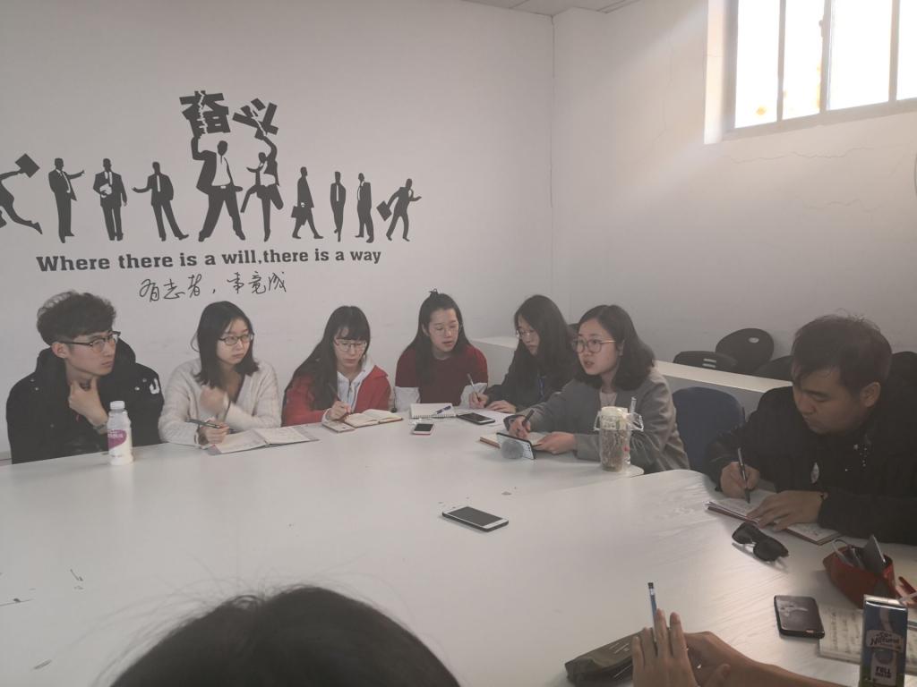本次会议由华大艺术团团长乔宇琛主持,这是李晨烨老师、唐佳琦老师第一次正式与艺术团成员见面,在介绍了两位指导老师后,在座的各位成员依次自我介绍,并简明扼要的介绍了本团队这学期的工作安排,舞蹈团及民乐团除了日常的训练外都在为本学期各自的专场做准备,主持队则把工作重心放在三月份的第十四届主持人大赛及对队员的培训上。听了大家的汇报,两位老师初步了解了艺术团的日常运营,李晨烨老师称赞这学期的工作安排很充实,同时也指出应当加强宣传,在QQ、微信、微博以及华大青年官方网站四管齐下,扩大艺术团的影响。