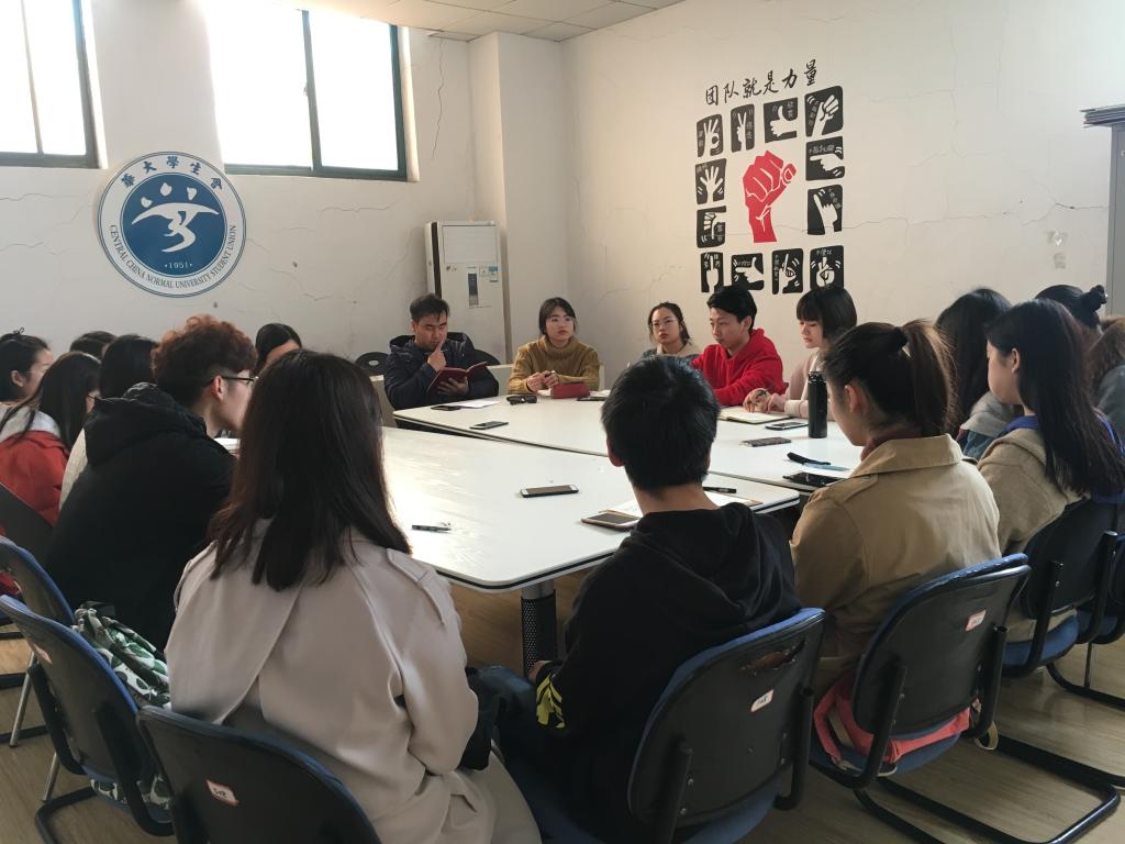 2018年3月13日中午,华大艺术团于我校大学生服务中心5楼会议室开展了指导老师见面会,李晨烨老师、唐佳琦老师出席了本次会议,李哲立老师因负责音乐本科招生缺席,参加会议的其他成员还有华大艺术团团长、副团长及各团团长各部门部长。