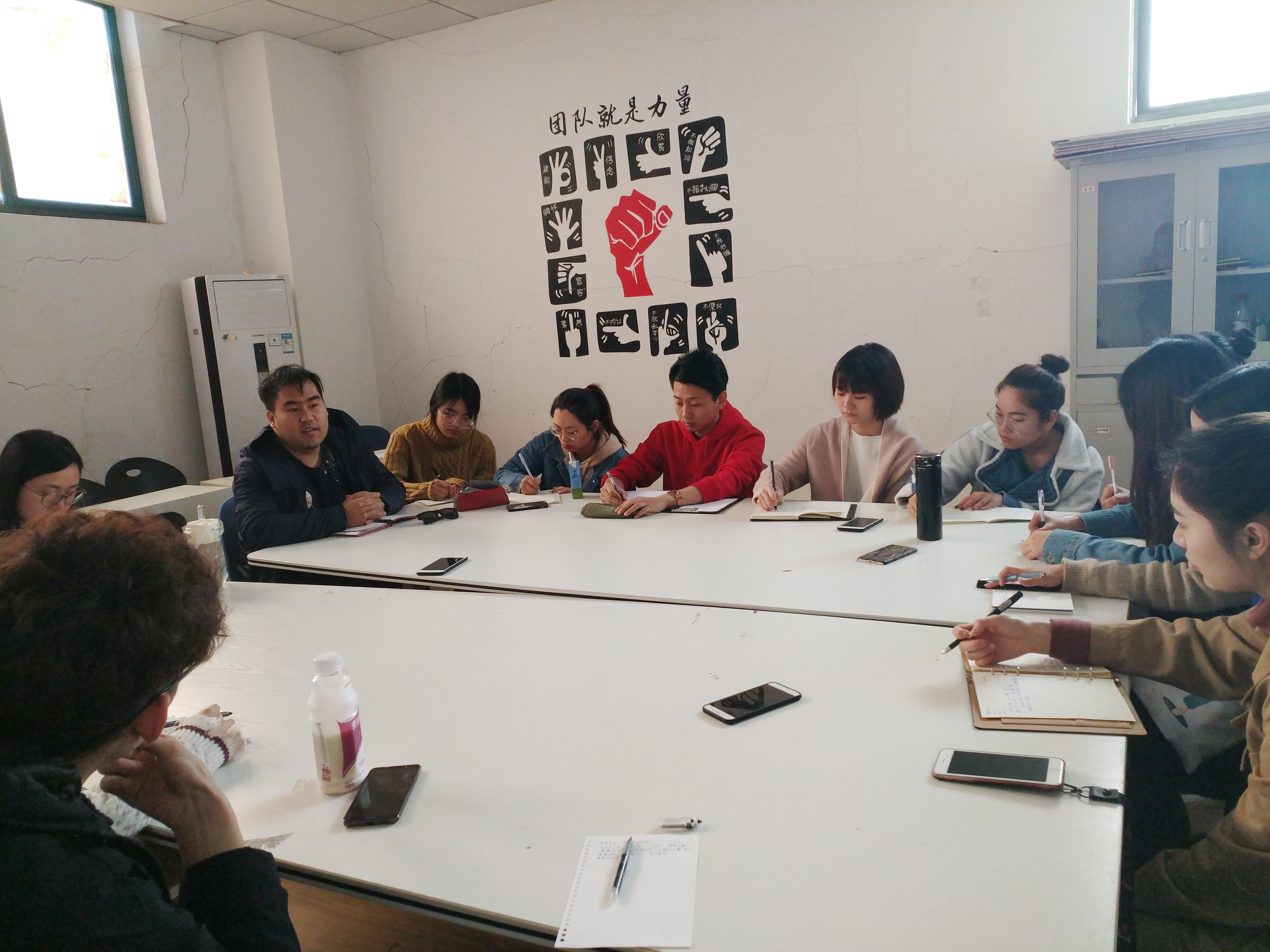 成员们工作介绍的环节结束后,唐老师、李老师和大家进行了交流。唐老师指出艺术团现在的发展有喜人的趋势,各个表演团队也都有了自己的成形作品,但是这还远远不够,唐老师用四个词语总结:加强指导,强化训练,产出作品,发挥影响,这样才能打出艺术团的品牌文化。李老师则提出建议:我们的作品在精不在多,艺术团的成员们可以“一专多能”,充分发挥自己的才能,可以几个团队合作多创造一些融合性的节目。唐老师和李老师的交流为艺术团今后的发展指明了方向。