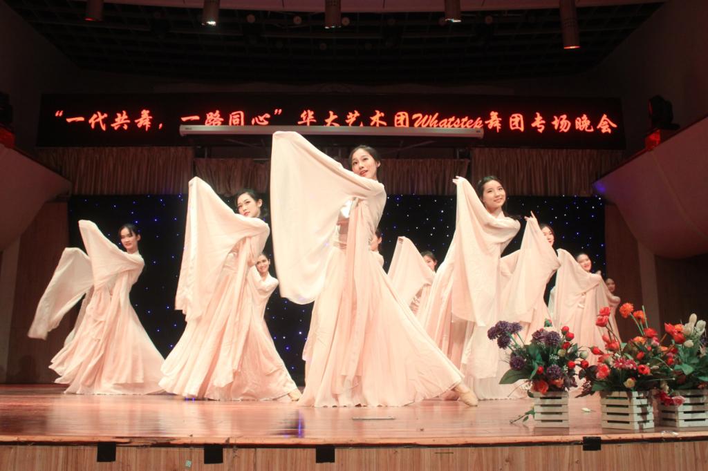 5月19日晚,“一带一路”对外文化交流活动暨“一代共舞,一路同心”华大艺术团舞蹈团专场晚会在音乐厅举行。本场晚会分为“舞·闪耀”、“忆·芳华”和“梦·启程”三个部分,融合了古今中外各式舞蹈,表现出一代共舞,一路同心,追随时代,梦想启程的主题。