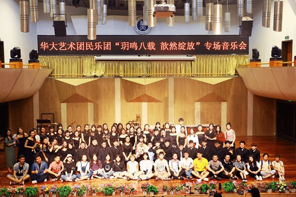 演出接近尾声,而观众们皆意犹未尽。在一片齐呼声中,指挥老师再次登台为大家续上一段曲目。 精彩而意犹未尽,震撼而仍有期待,在这个厅外月色撩人的夜晚,厅内的华大艺术团民乐团每一位成员都在舞台上呈现出了自己的最佳状态,为观众们带来了完美的演出。玥鸣八载,歆然绽放,国乐盛典,为你倾心!