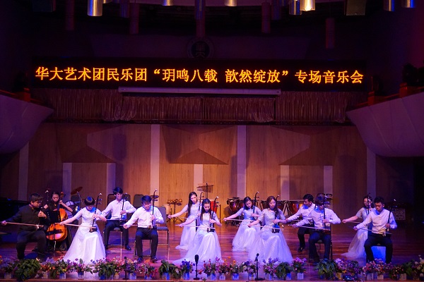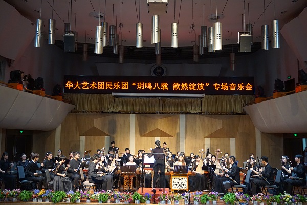 5月28日晚,华大艺术团民乐团“玥鸣八载 歆然绽放”专场音乐会在音乐厅举行。本场音乐会共10个表演曲目,既有高山流水的古典韵味,亦有中西合璧的现代风采,为同学们带来一场视听盛宴。