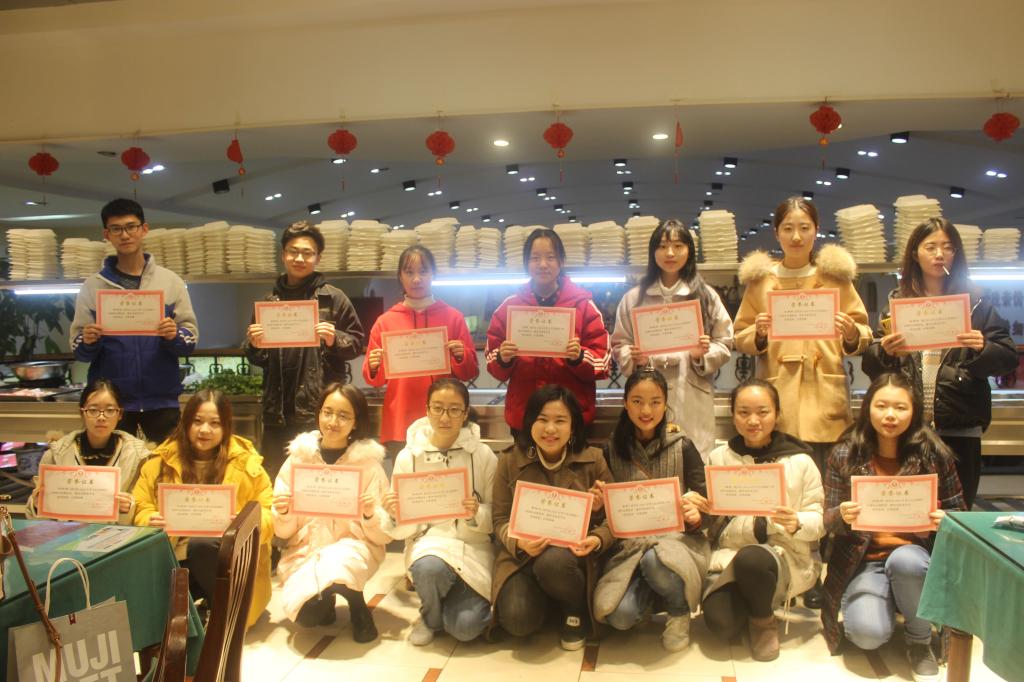 用餐完毕,活动进入最后环节,主持人侯志敏、赵展志颁发优秀学员证书,优秀学员合影留念。随后卢宇峥学姐发表寄语,“路漫漫,其修远兮,吾将上下而求索。我相信,新一代的华大艺术团人能不负众望、不辱众托、勤思苦练、奋发图强,争做充满青春朝气、充满开拓精神的华大艺术团的传承者和建设者。”