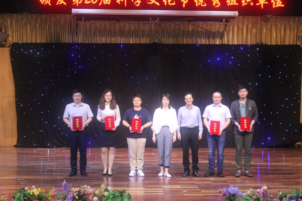 接着进入第二十六届“创新杯”科学文化节优秀组织单位颁奖仪式环节。由到场嘉宾杨军老师、田俊老师为获奖的数学与统计学学院、音乐学院、化学学院、外国语学院、城市与环境科学学院颁奖。
