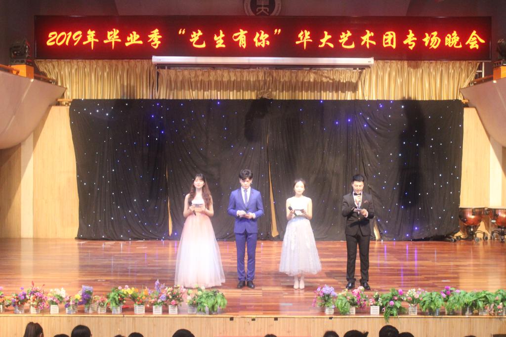 (通讯员 朱立颖) 2019年5月17日晚,华大艺术团于我校音乐厅举办了“艺生有你”专场晚会。研究生院、党委研究生工作部部长杨军老师,本科生院党委学生工作部副部长李刁老师,数学与统计学学院党委副书记田俊老师,校团委副书记胡余映老师,校团委副书记邹泽佩老师出席本次活动。
