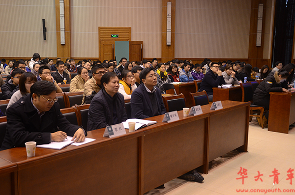 华大青年讯(记者 黄京 摄影 韩光煦)3月12日下午,中国人民大学国际关系学院副院长金灿荣教授在科学会堂一楼报告厅举行了“当前国际热点与十八大以来的中国外交”的主题讲座。校党委副书记谢守成、覃红,学生工作部部长刘宏达出席了讲座。