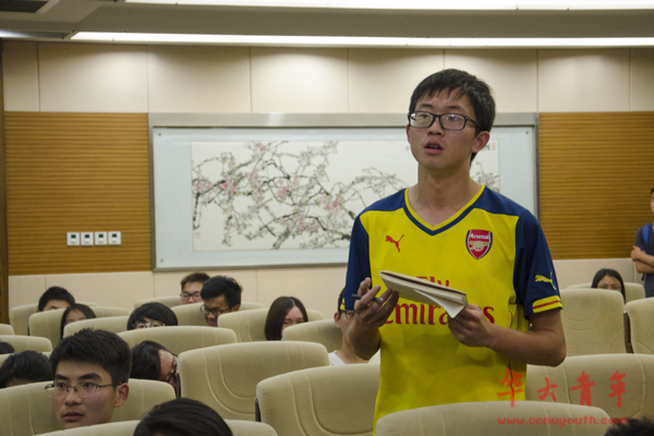 他的开场白幽默风趣,看到在场有很多身着阿森纳球衣的观众,颜强打趣道:“我觉得华师的同学们特别给我面子,来听我讲座的很多都身穿标准的球衣。只是不知道是不是因为最近阿森纳战绩不佳,所以球衣一直在打折。”一句话使得现场的气氛顿时活跃起来。
