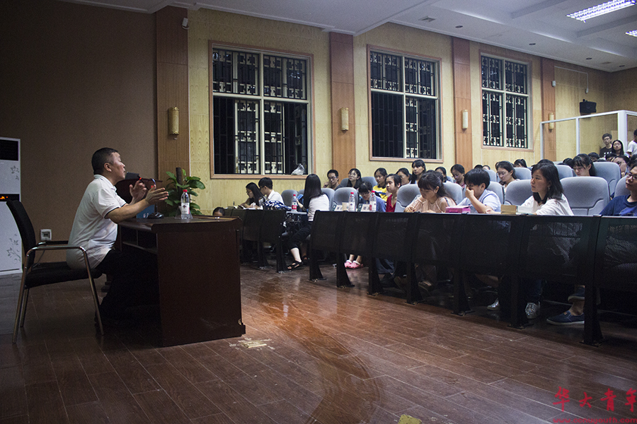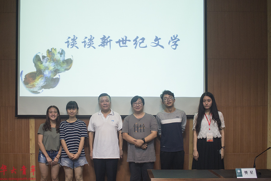 华大青年讯(记者 舒佳欣)9月25日晚,第四十四期名人名家说活动于文学院一楼报告厅举行。本次活动由校团委主办、摇篮文学社协办,邀请到了武汉大学文学院教授、中国新文学学会副会长樊星为我校师生做有关新世纪文学的交流。我校文学院教授晓苏为出席嘉宾。此次讲座现场气氛活泼热烈,学术氛围浓厚。