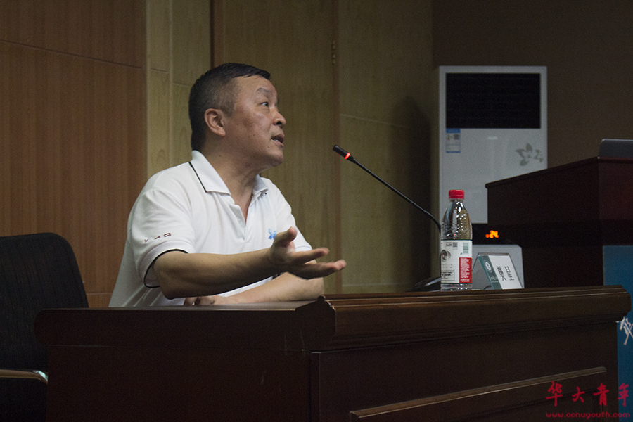 主讲人樊星为武汉大学文学院教授、博士生导师,系中国新文学学会副会长、湖北省作协副主席,著有《当代文学与地域文化》、《世纪末文化思潮史》、《别了,20世纪》等。讲座伊始,樊星从新世纪文学谈到新的生活方式,从新的生活方式看到身边新出现的元素。他在文学创作层面谈到了新世纪的文学创作特点,即应当注重现实生活、关注底层。从刘震云的《手机》分析,樊星说:“手机就相当于手雷,它是最方便的,也是最危险的。”随后他又举例谷歌眼镜这个新事物带来的便利以及矛盾,让在座听者更加体会到,科技创新给人们带来的诸如侵犯隐私之类的新挑战。对于以上话题,樊星概括到:“我们一方面要追赶科技的脚步,另一方面也要从新事物中反思和提取。”