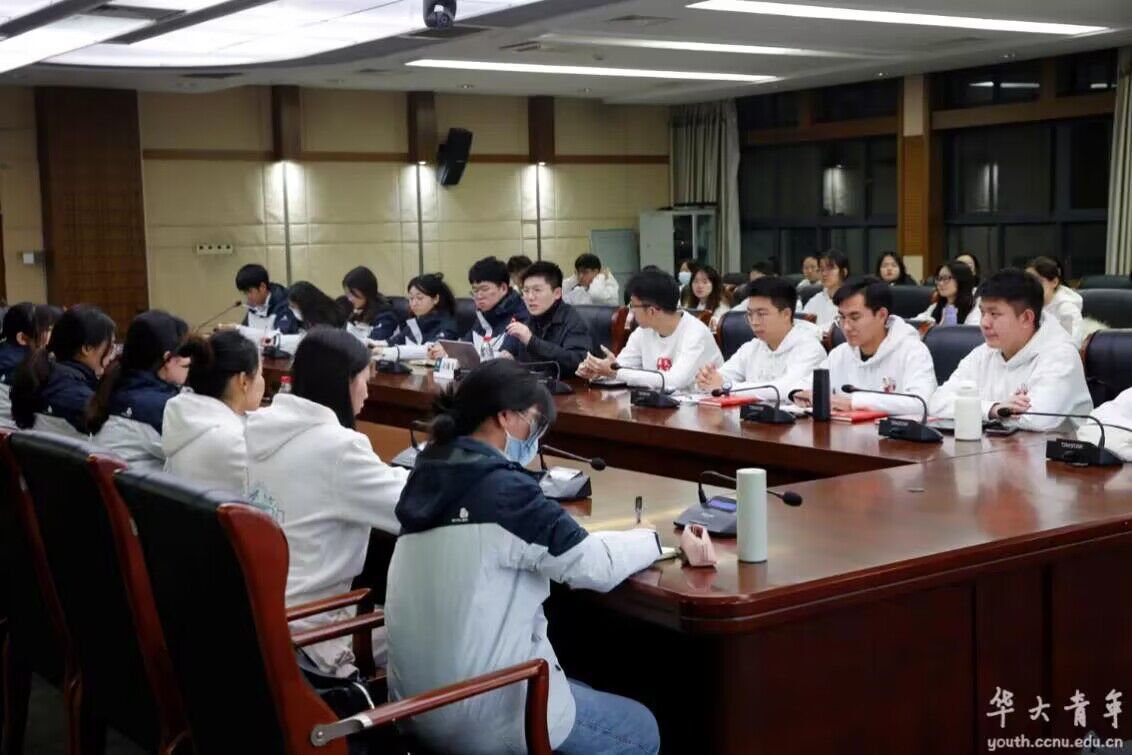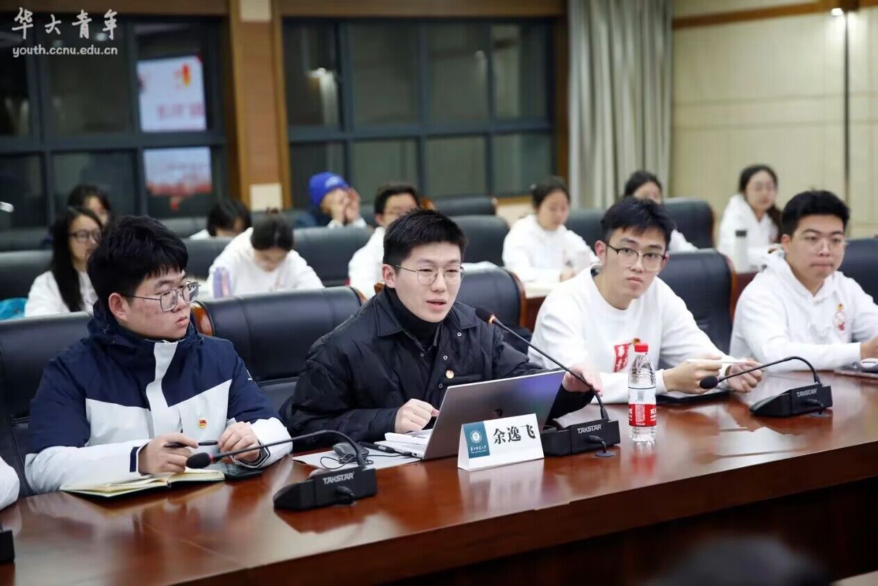 华大青年讯(文字 金瑞安 摄影 孙懿德 胡一凡)12月22日晚,全国“青马工程”高校班学员与华中师范大学学生骨干理论学习交流会在华中师范大学逸夫国际会议中心二楼会议室举行。全国“青马工程”高校班学员、马克思主义学院2021级思想政治教育专业硕士研究生余逸飞担任主讲人,并以“深入推进‘青马工程’,做坚定有为的青年马克思主义者”为主题展开授课。华中师范大学青年马克思主义者培养工程恽代英菁英学校第9期学员,第26届研究生支教团全体成员,校学生会、校研究生会主要学生骨干参加活动。