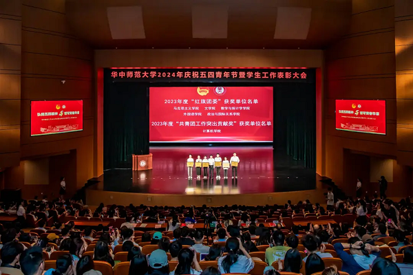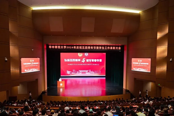 学生工作表彰大会上,华中师范大学2024年庆祝五四青年节原创主题视频《回响》首次放映。