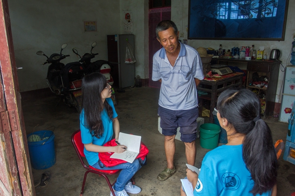 15级陈荣还没有太多“实战”经验,刚刚下乡,觉得自己就是个“摸不着脑袋的城市愚人”,不知天地,不识庄稼。雨小一些的时候,她和同组的伙伴去村中一户贫困的人家采访,受访的是个奶奶。陈荣有些心疼,“失去劳动力的这一家,田地抛荒,而旁边地里的作物,看上去势头正好。”