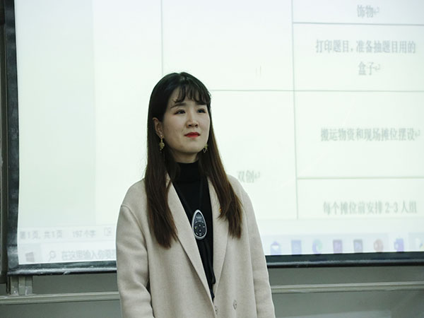 随后,高玉茜为团学成员进行第七期团干培训。她从策划大型活动的注意事项及团学成员如何培养人文情怀两大板块展开讲解。简单介绍大型活动常见的种类和举办地点之后,高玉茜结合举办往期活动的经验,强调道:“策划大型活动时,一定要将道具提前一天准备好,并做好核实出勤等工作安排。在具体规划中须落实好每个人的责任,留好每个人的联系方式。”