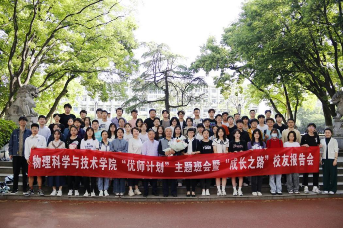 华大青年讯(通讯员 杨枫 贾一翀 罗可欣)4月16日,物理科学与技术学院78级校友、被全国网友亲切地称为“活动的物理教案博物馆”的武汉市东湖中学物理特级教师程启明,受邀回到母校,参加物理学院“优师计划”主题班会暨“成长之路”校友分享会,为同学们带来“学为人师”主题报告。物理学院党委书记张明生,党委副书记曹阳、副院长兼22级优师计划班主任吴少平教授、物理教育研究所专任教师兼21级优师计划班主任乔翠兰副教授,本研各年级的学生代表和辅导员老师参加活动。本次活动由党委副书记马英主持。